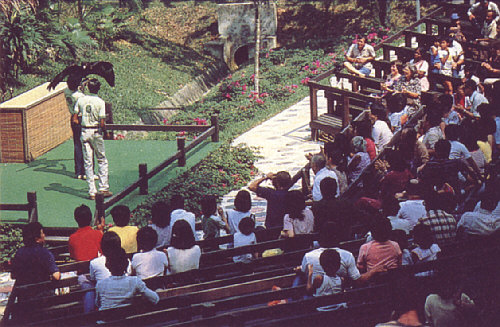 werden. Ein künstlicher Wasserfall, Teiche und Brücken, simulierte Stürme, Nebel, Regen, Donner, ein Nachthaus, 80 Vogelgehege, Wanderwege und verschiedene Vorführungen bilden